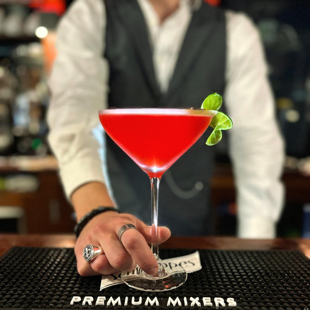 | Cosmopolitan Vodka, cointreau, jus de citron, jus de cramberry |
